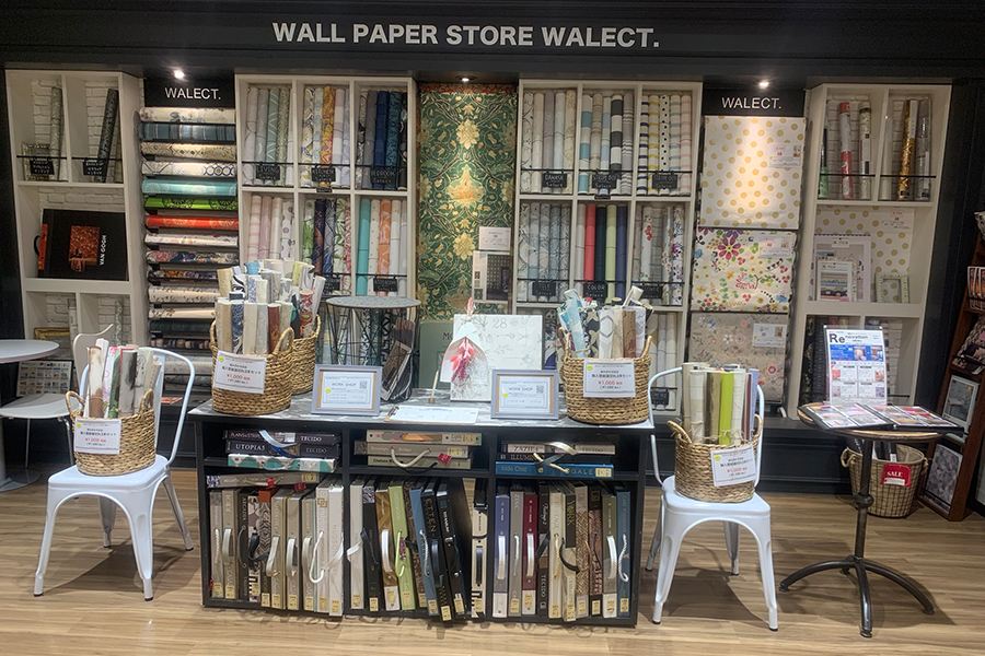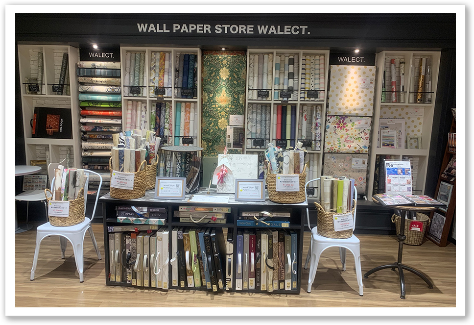 お客様宅での施工(営業エリア内)店舗販売(海外メーカー・国内メーカーの壁紙、DIY雑貨等も最先端に取り揃えています)